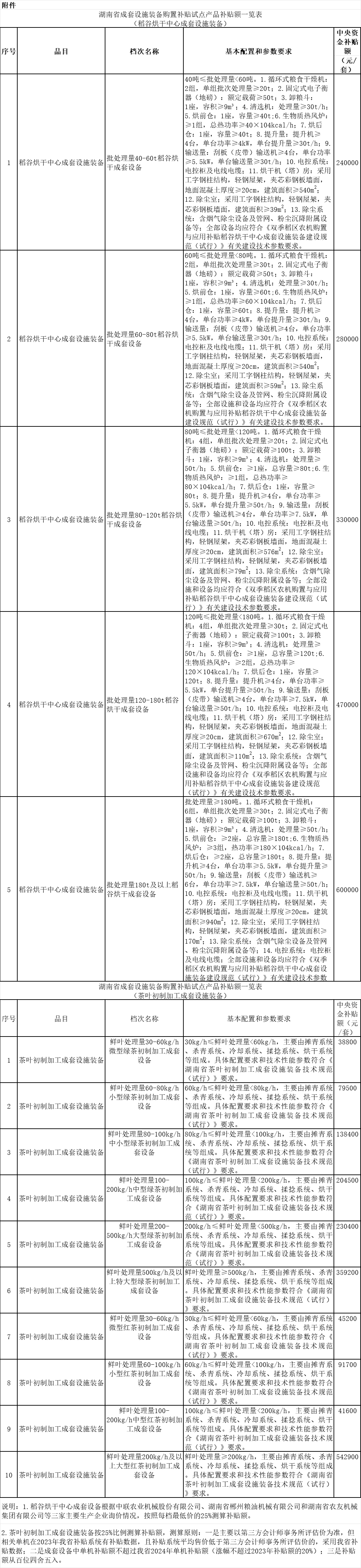 附件:湖南省成套设施装备购置补贴试点产品补贴额一览表