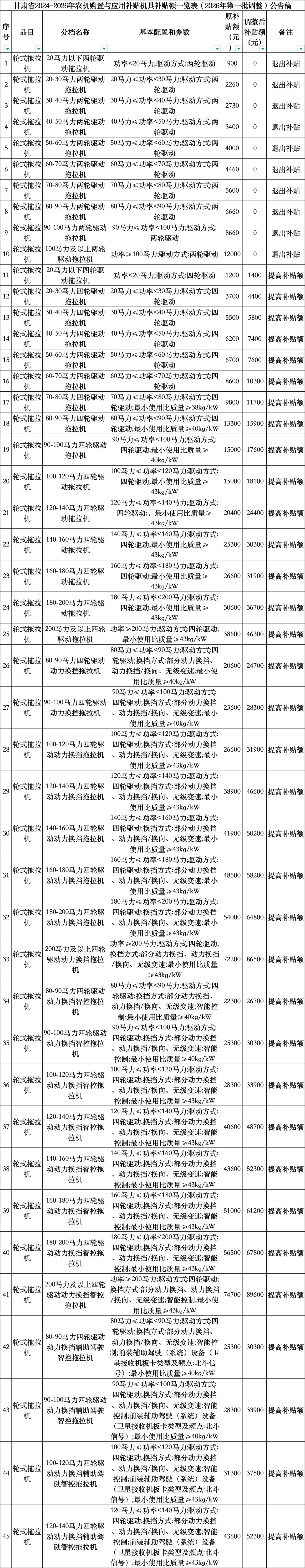 附件 甘肃省农业农村厅关于《甘肃省2024-2026年农机购置与应用补贴机具补贴额一览表(2026年第一批调整)》的公告